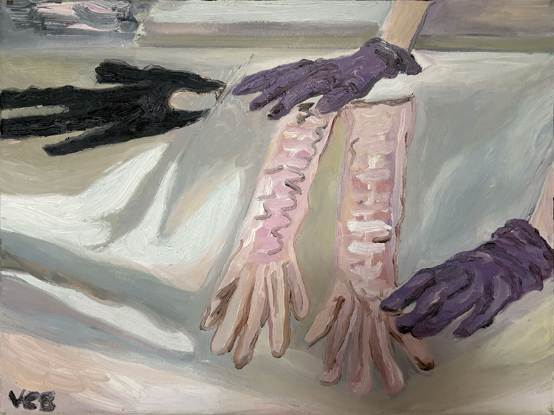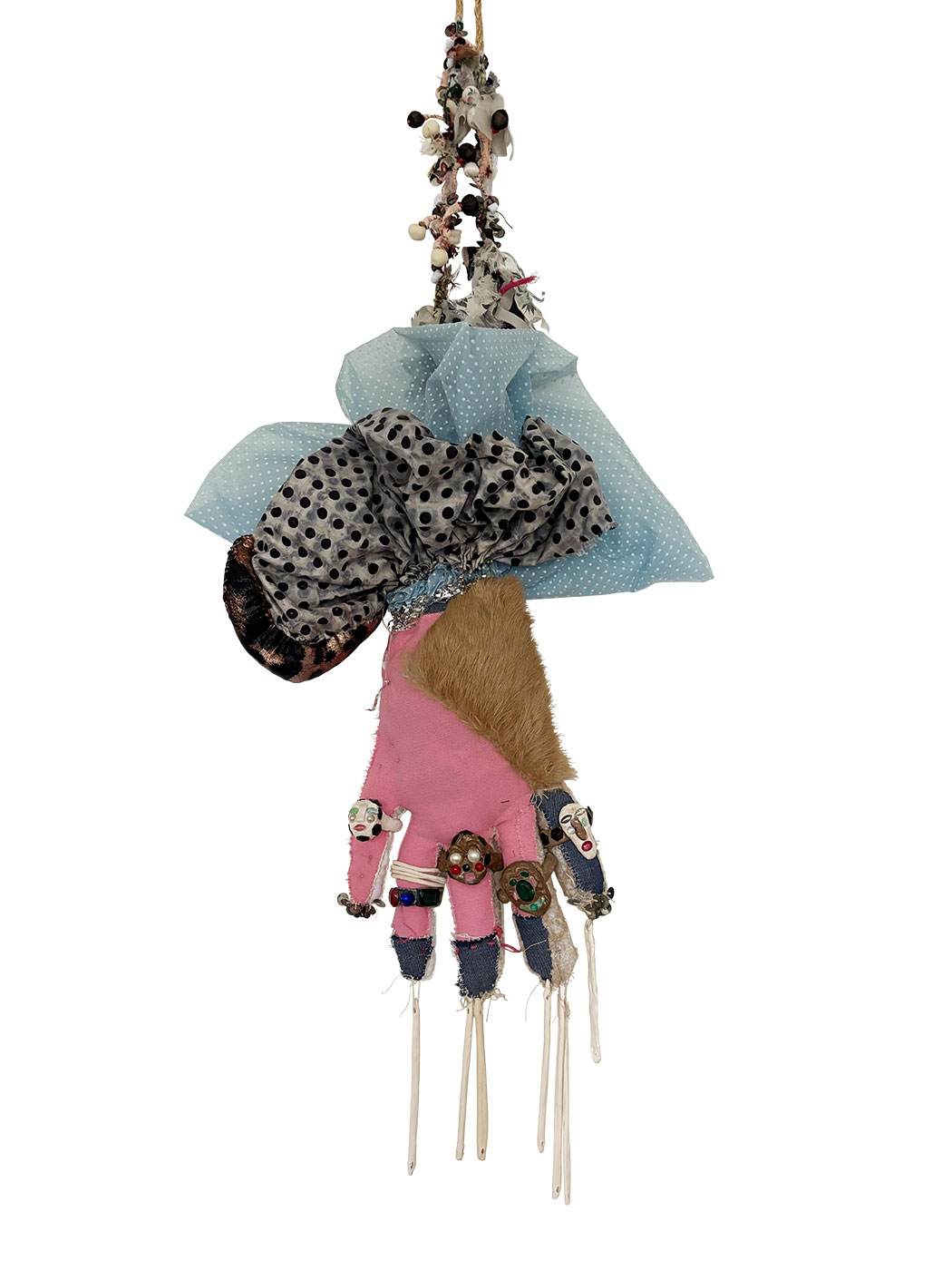 Main gantée—2024—133x42x25cm—textile, ceramic, fur, rhinestones, sequins