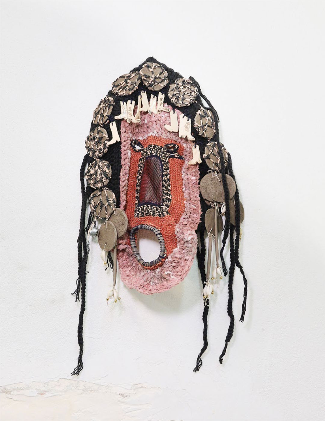 Masque textile—2024—60x30cm—python leather, wool, silk, lurex, plastic and ceramic