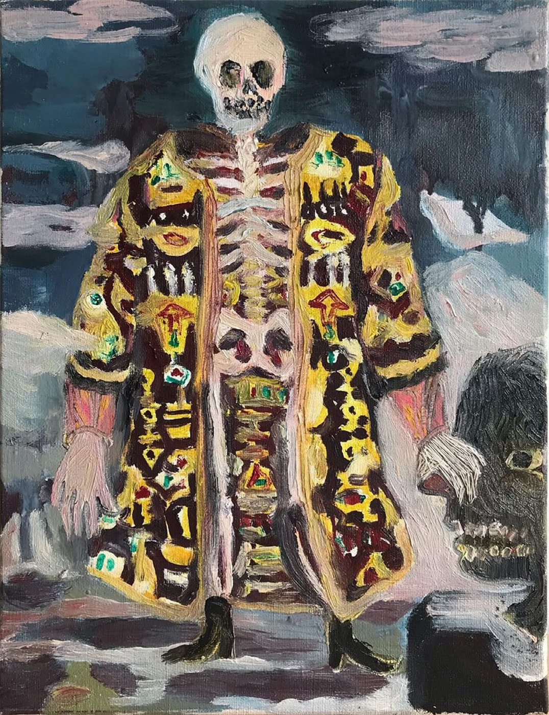 Autoportrait—2024—32x24cm—oil paint, marble powder, pastel, embroidered cotton on canvas