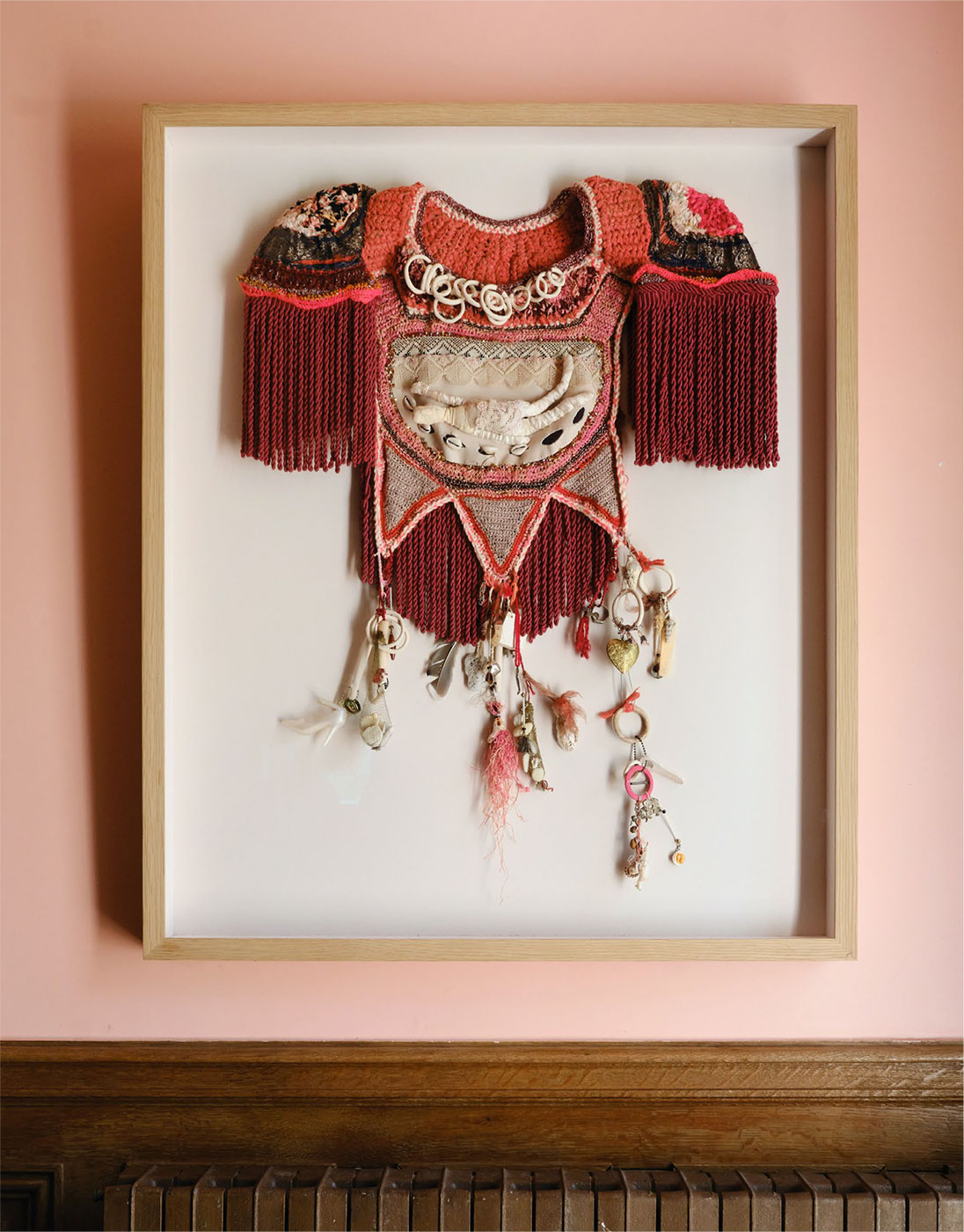 Boléro d'accouchement—2017—80x120cm—textile, various objects, ceramic, metal, and plastic