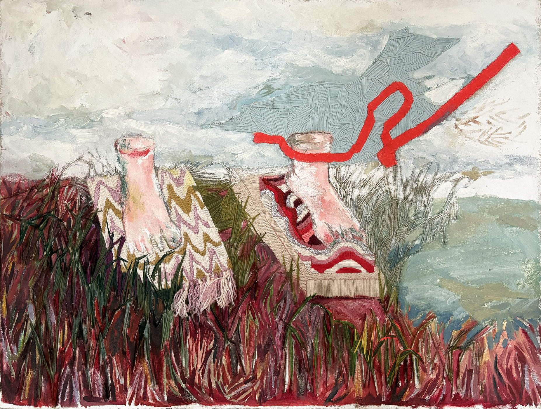 Mettre son mouchoir sur—2019—100x80cm—oil paint and embroidered cotton thread on canvas